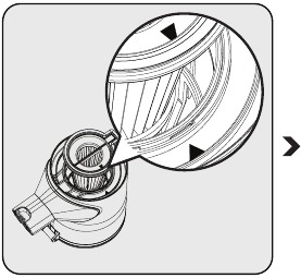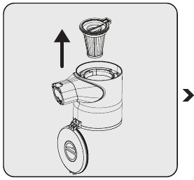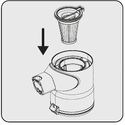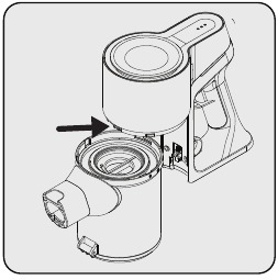 - Aby produkt dlouhodobě fungoval s vysokým výkonem, může být nutné vyčistit filtr otáčením mechanismu pod nádobou na prach. Usnadní to čištění filtru.