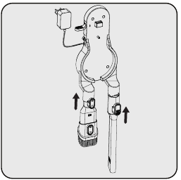 - Připevněte štěrbinovou hubici a kombinovaný nástroj k nabíjecímu doku.