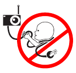 - Používání jiných produktů s frekvencí 2,4 GHz, jako jsou bezdrátové sítě (Wi-Fi routery), systémy Bluetooth nebo mikrovlnné trouby, může způsobit rušení tohoto produktu, proto udržujte dětskou chůvičku ve vzdálenosti alespoň 1,5 m od takových produktů, nebo je vypněte, pokud způsobují rušení.