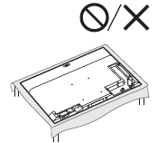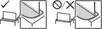 - Nainstalujte televizor tak, aby stolní stojan televizoru nevyčníval ze stojanu (není součástí dodávky). Pokud stolní stojan vyčnívá ze stojanu, může dojít k převrácení televizoru, pádu a způsobení zranění osob nebo poškození televizoru.
