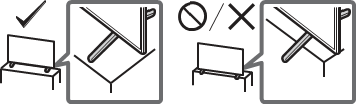 - Nainstalujte televizor tak, aby stolní stojan televizoru nevyčníval ze stojanu (není součástí dodávky). Pokud stolní stojan vyčnívá ze stojanu, může to způsobit převrácení televizoru, pád a způsobit zranění nebo poškození televizoru.