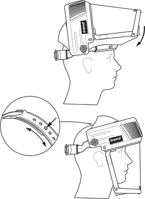 Používejte pouze náhradní díly a příslušenství dodávané společností Trend Machinery & Cutting Tools Ltd. Na příslušenství, které nedodává společnost Trend Machinery & Cutting Tools Ltd., se nevztahuje záruka a zneplatní veškerá národní schválení, která společnost Trend Machinery & Cutting Tools Ltd. vlastní. Úpravy štítu Airshield způsobí neplatnost schválení a používání bude v rozporu s národními zákony a pokyny.