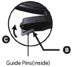 - Zatlačte stylus nahoru, jak je znázorněno ve směru "C", dokud se stylus nezajistí v koncové poloze.