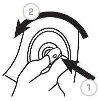 - Zasuňte klíč úplně dovnitř (1) a poté jím otočte proti směru hodinových ručiček do polohy Lock/Off (Zamknuto/Vypnuto) (2).