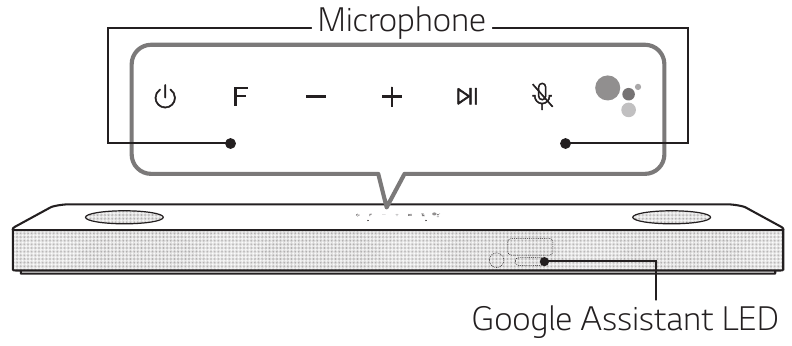 Asistent Google reaguje na hlasové příkazy pouze v případě, že používáte Wi-Fi nebo BT (Bluetooth) jako vstup. Pokud používáte HDMI, Optical, ARC, Optical Sound Sync nebo USB vstup, musíte použít tlačítko