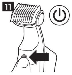 Bemærk: Sørg for, at den flade del af trimningskammen altid er fuldt i kontakt med huden. - Sluk og rengør produktet efter hver brug (se 'Rengøring').