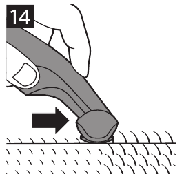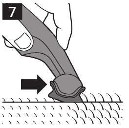 - For at montere en afstandskam, klikkes den forreste del af kammen på tænderne, og fremspringet bag på kammen trykkes ind i produktet ("click" (klik)).