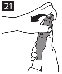 - For at fjerne produktet fra rygbarberingsudstyret, træk toppen af produktet mod dig, indtil det låses ud af holderen (Fig. 21).
