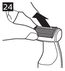- Fjern barberfoliehovedet ved at trække det af produktet (Fig. 24).
