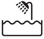 Dette symbol indikerer, at produktet kan bruges i badekar eller brusebad.