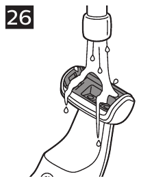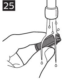 - Skyl hårkammeret under varmt rindende vand for at fjerne eventuelle rester (Fig. 26).