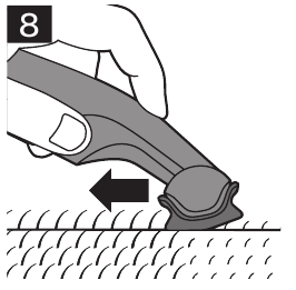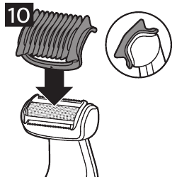 - Sæt den ønskede trimningskam på produktet (Fig. 10). Trim mod hårets vækstretning for optimal ydeevne (Fig. 7, Fig. 8).