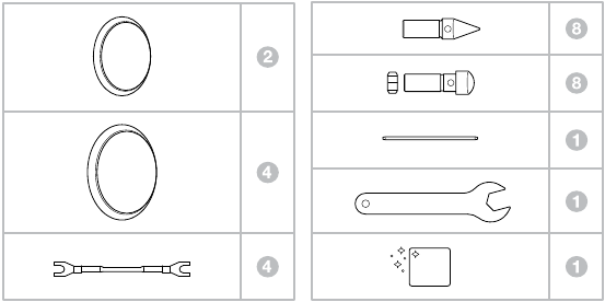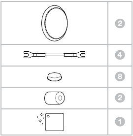 8 Gummifødder og låsemøtrikker (monteret på højttaleren)