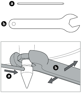 Bemærk: Hvis spikene bruges på et hårdt gulv, anbefales det at placere en hård beskyttende overflade mellem spikene og gulvet for at sikre, at gulvet ikke bliver mærket af spiken.