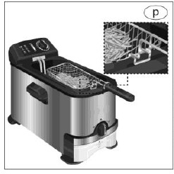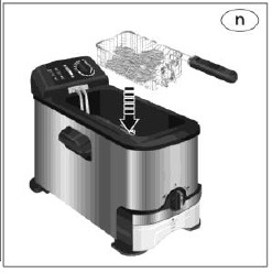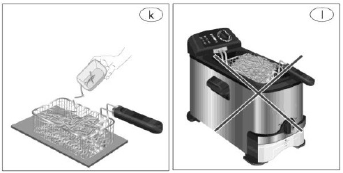 Madolie skummer | Kurven er overfyldt | Løft kurven ud i håndtaget, og hæng den på kurvekrogen i hakket. Fjern overskydende mad med passende redskaber |