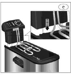 - Indsæt oliebeholderen (15) tilbage i apparatet og drej oliefiltreringskontrolknappen (14) til positionen LOCK (lås) for at fastgøre oliebeholderen (15) (ill. t).