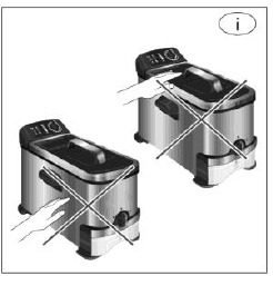 - Ekstrem forsigtighed skal udvises, når en frituregryde indeholdende varm olie eller andre varme væsker flyttes.