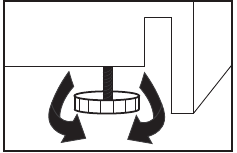 - Drej nivelleringsfoden mod uret så langt som muligt, indtil toppen af foden rører bunden af skabet.