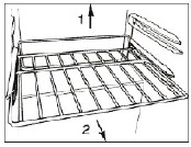 For at fjerne en hylde fra dens låste position skal du løfte hyldens bagside opad og derefter skubbe hylden ud af enheden.