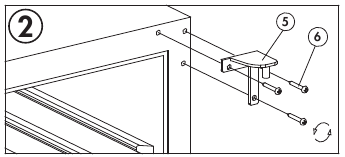 - Fjern skruehulskapperne fra den øverste venstre side af kabinettet og installer det øverste venstre hængsel. Placer skruehulskapperne i skruehullerne på den øverste højre side af kabinettet.