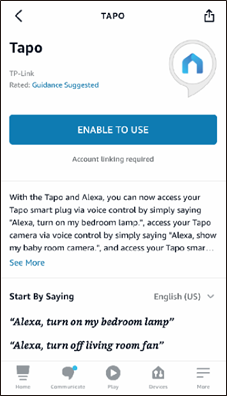 Hvis denne enhed vises på startsiden i Tapo appen, indikerer det, at enheden er blevet succesfuldt tilknyttet din Amazon konto og automatisk er tilsluttet dit Wi-Fi netværk.