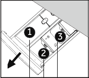 - låsetap, tryk den ned for at trække dispenserskuffen ud