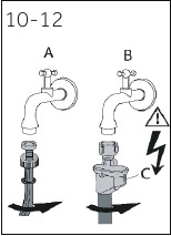 Klip eller afmonter aldrig den tredje ben (jord). Når apparatet er installeret, skal stikket være tilgængeligt. - Sørg for, at slangesamlingerne og -tilslutningerne er faste, og at der ikke er nogen lækage.