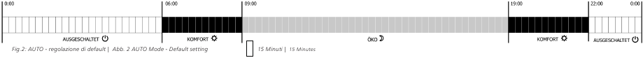 Gør det muligt at tænde og slukke for varmelegemet og arbejde med COMFORT- og ECO-indstillinger i henhold til en programmeret tidsplan. Automatisk tilstand har 96 hukommelsesceller, hver enkelt dækker en tidsperiode på 15 minutter. For hver 15 minutter kan brugeren indstille en af de tre indstillinger: