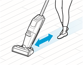 - Hvis dit apparat har en motoriseret børsterulle, må du ikke lade maskinen køre på samme sted uden at håndtaget er helt oprejst.