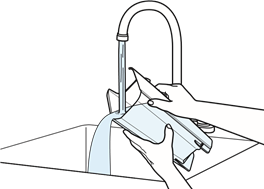 - Må ikke nedsænkes. Brug kun på overflader, der er fugtet af rengøringsprocessen.