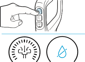 | 7. Ved større spild og gulvtæpper skal du skifte til Turbo-tilstand (A) for at få ekstra rengøringsvæske og sugeevne. | 8. Når rentvandstanken er tom, bipper maskinen og viser ikonet for tilføj vand. Hvis den rene tank ikke er fyldt, vender maskinen tilbage til tørrengøringstilstand. Fjern ren tank og fyld den igen. | 9. Hvis snavsetvandstanken er fuld, bipper maskinen og viser ikonet for fuld snavsetvandstank. Tøm tanken. |