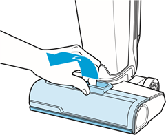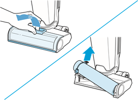 Bemærk: Hvis børsterullen stadig er snavset, kan den vaskes i hånden med mildt rengøringsmiddel og placeres i børsterulleholderen på opladningsbakken for at tørre.