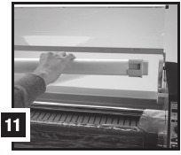 - Følg proceduren i afsnittet PÅFYLDNING OG ITRÆKNING AF FILM, Metode ved hjælp af film-itrækningskort for at genindlæse lamineringsmaskinen.