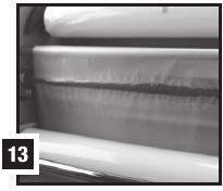 | Bølger vises udad fra mediets bagkant (bådvågning) | Vil forekomme på tykkere medier. | Brug tyndere medier, når det er muligt. At sænke hastigheden vil reducere mængden af bådvågning. |