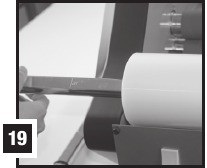 - Fjern filmen fra lamineringsmaskinen i henhold til proceduren beskrevet i afsnittet PÅFYLDNING OG ITRÆKNING AF FILM.