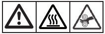 ![]() | Denne sikkerhedsmeddelelse betyder, at du kan blive forbrændt, og dine fingre eller hænder kan blive fanget og knust i de varme valser. Tøj, smykker og langt hår kan blive fanget i valserne og trække dig ind i dem. |
