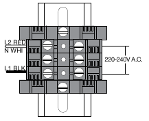 "A" Modelle benötigen einen geerdeten 2-Leiter-Anschluss mit 220 - 240 Volt Wechselstrom, 15 Ampere, einphasig, 50/60 Hz. Eine allpolige Trennvorrichtung muss gemäß den örtlichen Verdrahtungsvorschriften in die feste Verdrahtung integriert werden. Gehen Sie wie folgt vor: