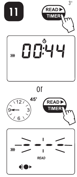 /TIMER drei Sekunden lang. Das Display zeigt den Countdown vor der Messung an. Der Piepton ertönt am Ende des Countdowns.