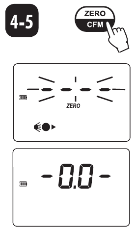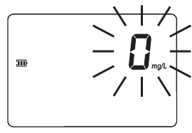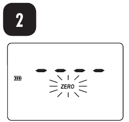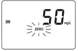 - Wenn der Piepton kurz ertönt und das LCD Striche anzeigt, ist das Messgerät bereit. Das blinkende "ZERO" (NULL) zeigt an, dass das Gerät zuerst genullt werden muss.