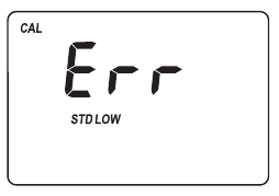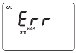 Hinweis: Wenn das Display "STD HIGH" (STD HOCH) anzeigt, war der Standardwert zu hoch. Wenn das Display "STD LOW" (STD NIEDRIG) anzeigt, war der Standardwert zu niedrig. Überprüfen Sie, ob beide CAL Check™ Standard HI96720-11 Küvetten, A und B, frei von Fingerabdrücken oder Schmutz sind und korrekt eingesetzt wurden.