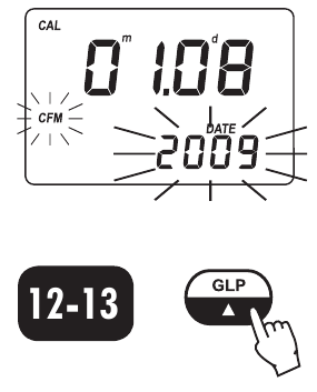 - Wenn das richtige Jahr eingestellt wurde, drücken Sie ZERO/CFM (NULL/BESTÄTIGEN) oder READ (LESEN)
