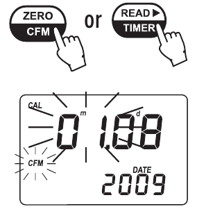 - Drücken Sie ZERO/CFM (NULL/BESTÄTIGEN), um das Kalibrierungsdatum zu speichern.