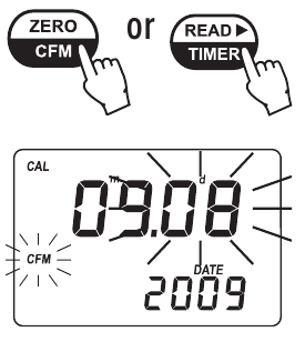 - Wenn der richtige Monat eingestellt wurde, drücken Sie ZERO/CFM (NULL/BESTÄTIGEN) oder READ (LESEN)