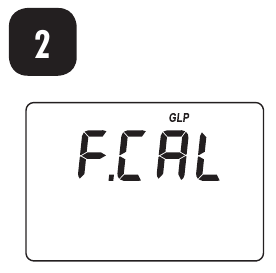 - Wurde keine Kalibrierung durchgeführt, erscheint die Werkskalibrierungsmeldung "F.CAL" (W.KAL) auf dem Hauptdisplay, und das Instrument kehrt nach drei Sekunden in den Messmodus zurück.
