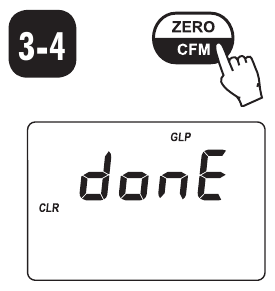 - Drücken Sie ZERO/CFM (NULL/BESTÄTIGEN), um die Werkskalibrierung wiederherzustellen, oder drücken Sie GLP/