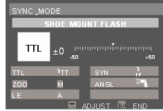Wenn Sie FP in der Einstellung "SYNC" (Synchronisation) wählen, bedeutet dies, dass die High-Speed Sync-Funktion eingeschaltet ist.