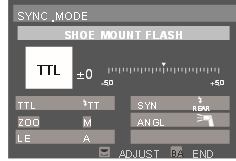 Drücken Sie die <MODE>-Modusauswahltaste, um in den TTL-Modus zu wechseln. Auf dem LCD-Bildschirm wird <TTL> angezeigt.