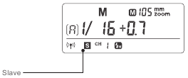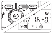 Im manuellen M-Blitzmodus drücken Sie die <SLAVE>-Taste, damit dieser Blitz als optischer S1-Sekundärblitz mit optischem Sensor fungieren kann. Mit dieser Funktion löst der Blitz synchron aus, wenn der Hauptblitz ausgelöst wird, mit dem gleichen Effekt wie bei der Verwendung von Funkfernsteuerungen. Dies hilft, vielfältige Lichteffekte zu erzielen.