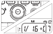 Drücken Sie die SET-Taste, und der Wert der Blitzbelichtungskorrektur wird auf dem LCD-Bildschirm hervorgehoben.