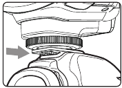 Schieben Sie den Montagefuß des Kamerablitzes ganz in den Blitzschuh der Kamera.